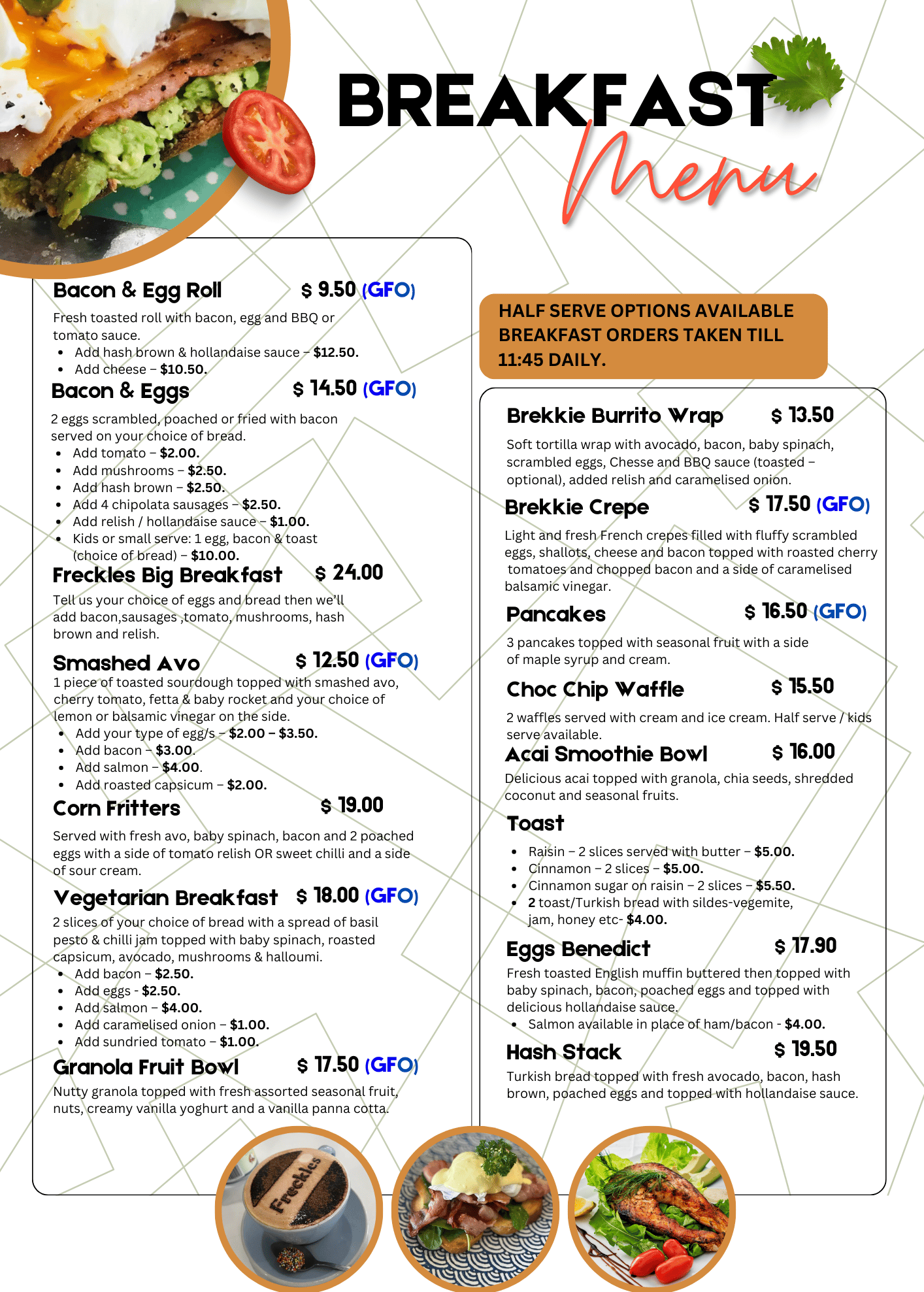 Reserve your table for a delightful dining experience at Freckles Cafe today!